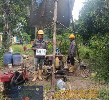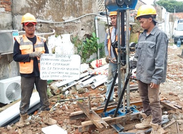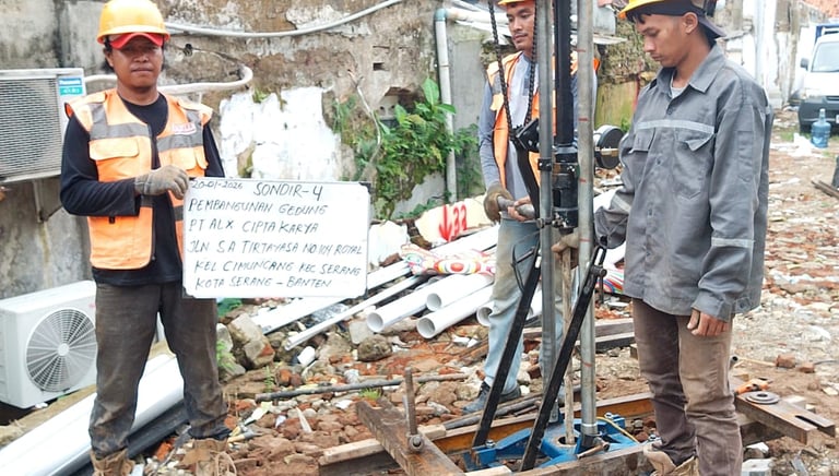 Standard Penetration Test (SPT): Mengukur nilai perlawanan tanah terhadap penetrasi, memberikan data teknis kekuatan tanah.